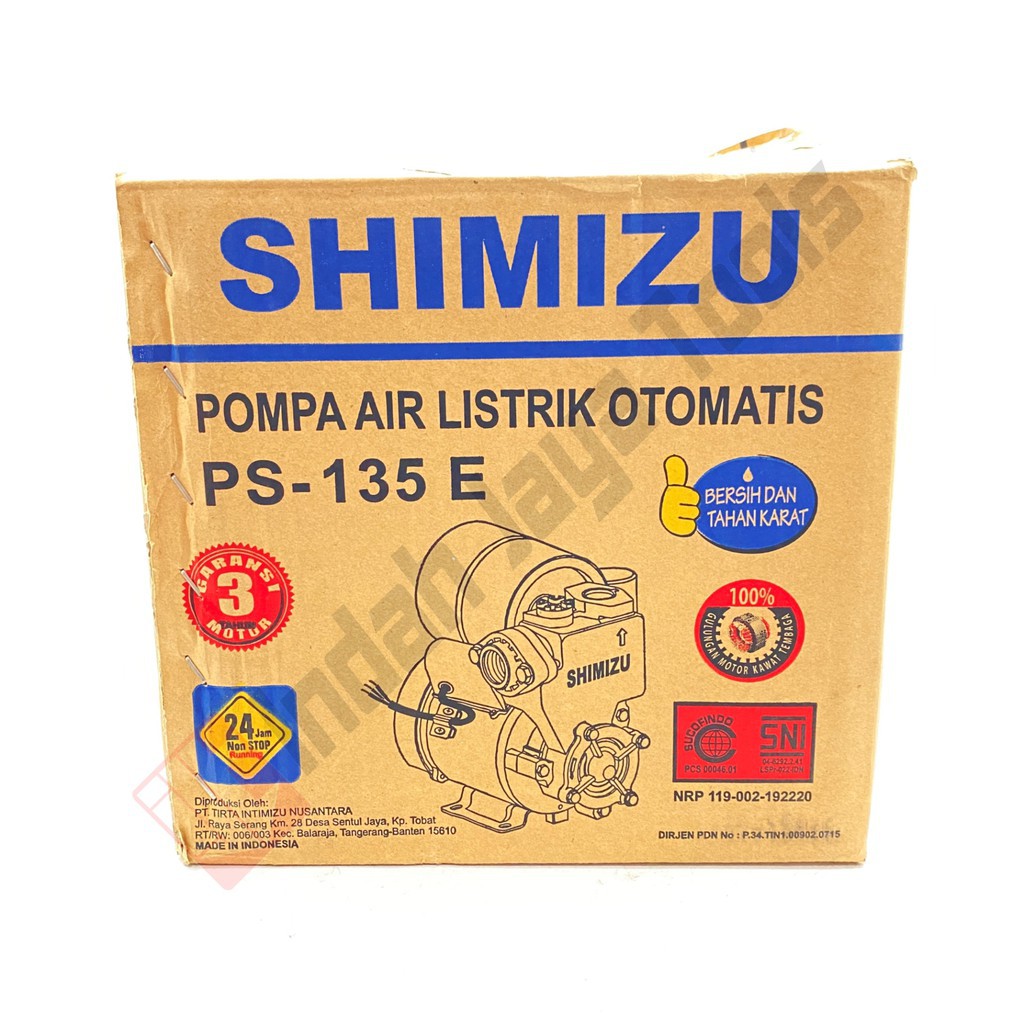 Shimizu ps 135 e merupakan salah satu pompa air yang berkualitas, dengan harga yang tergolong murah, namun sudah kaya akan fitur yang modern. Pompa sumur dangkal kategori otomatis daya output listrik 125 daya input start 250 daya silahkan di klik harga dan produk secara otomatis terseret ke kotak cart (keranjang belanja). Harga shimizu ps 135 e otomatis pompa air pendorong otomatis shimizu ps 135. Pompa ini merupakan pompa sumur dangkal otomatis 125 watt yang memiliki daya sedot yg kuat, kerjanya praktis dan serba ekonomis. 9 meter daya dorong : Jadi merupakan hal yang wajar jika harganya tidak begitu mahal. Jual shimizu pompa air otomatis ps 135 e automatic di sumber www.bukalapak.com. Ketik jawabanmu sekarang juga, siapa tahu keberuntungan satu ini milikmu! Be the first to review pompa air shimizu ps 135 e cancel reply. Tool station toko online alat teknik sumber www.onlinemja.com. Selain itu garansi pompa atau produk dengan. Harga pompa air shimizu ps 135 e otomatis memang sangat terjangkau. Meski begitu kualitasnya tidak bisa anda sepelekan.